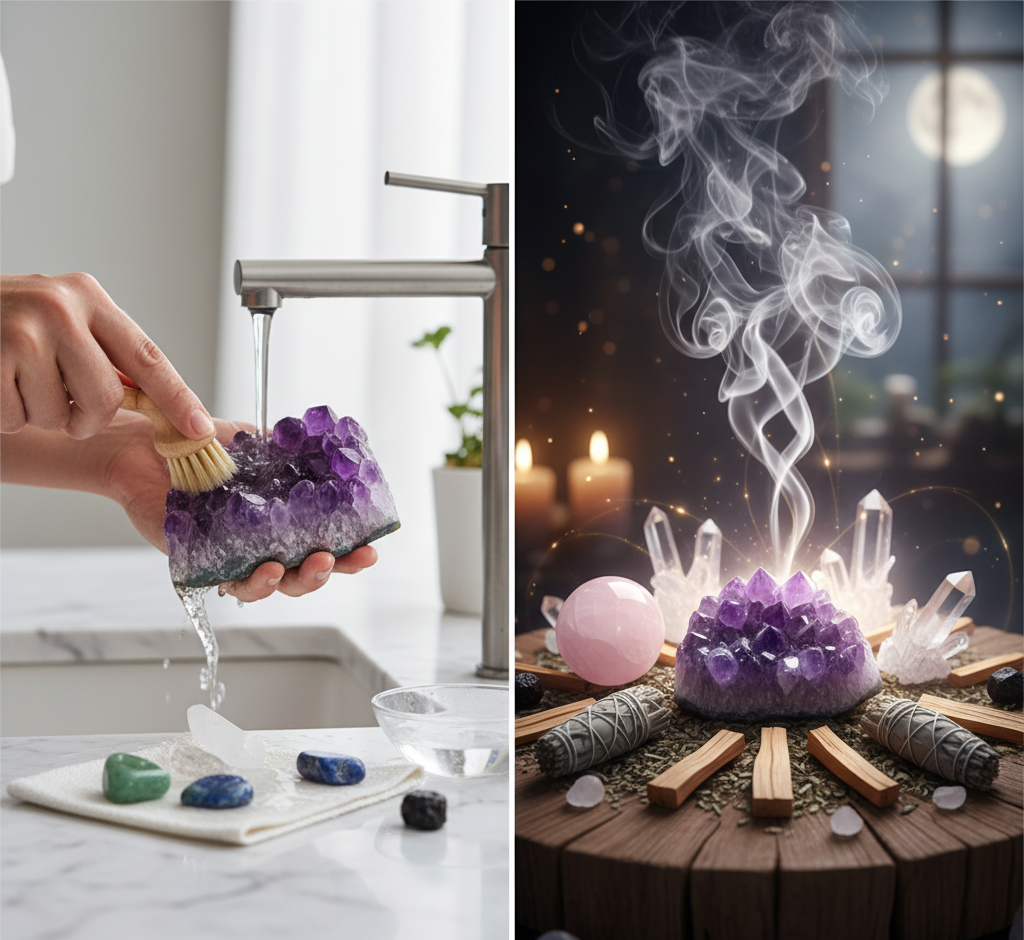 Limpieza física vs. limpieza energética: cómo purificar tus piedras de forma completa